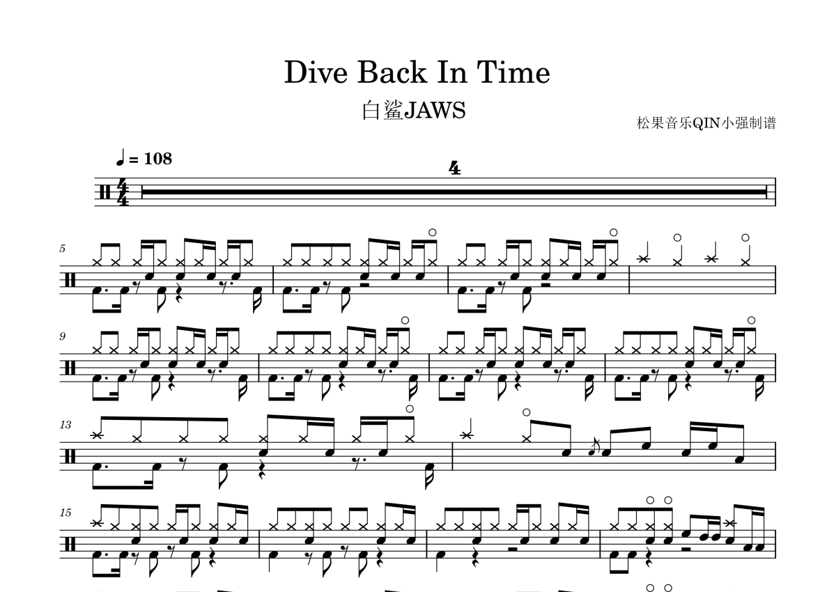 白鲨JAWS《Dive Back In Time》架子鼓谱