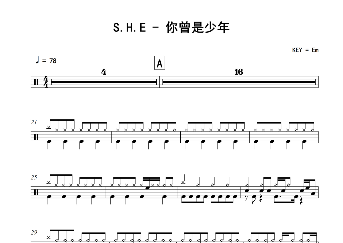 S.H.E《你曾是少年》架子鼓谱
