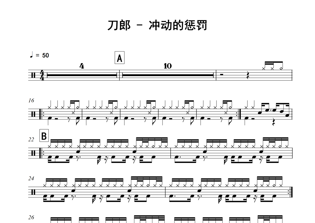 冲动的惩罚架子鼓谱 - 刀郎演唱