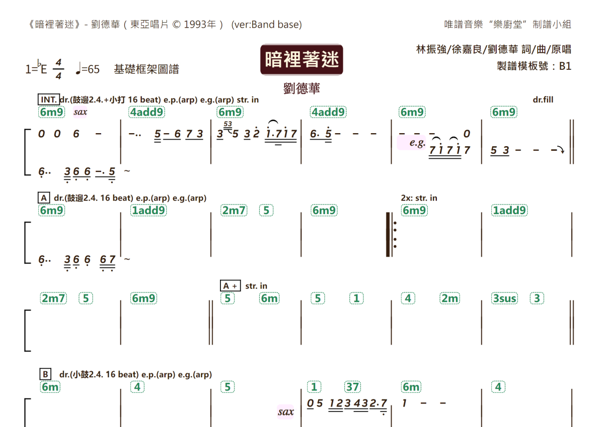 刘德华《暗里着迷》乐队总谱 - 基础框架团谱