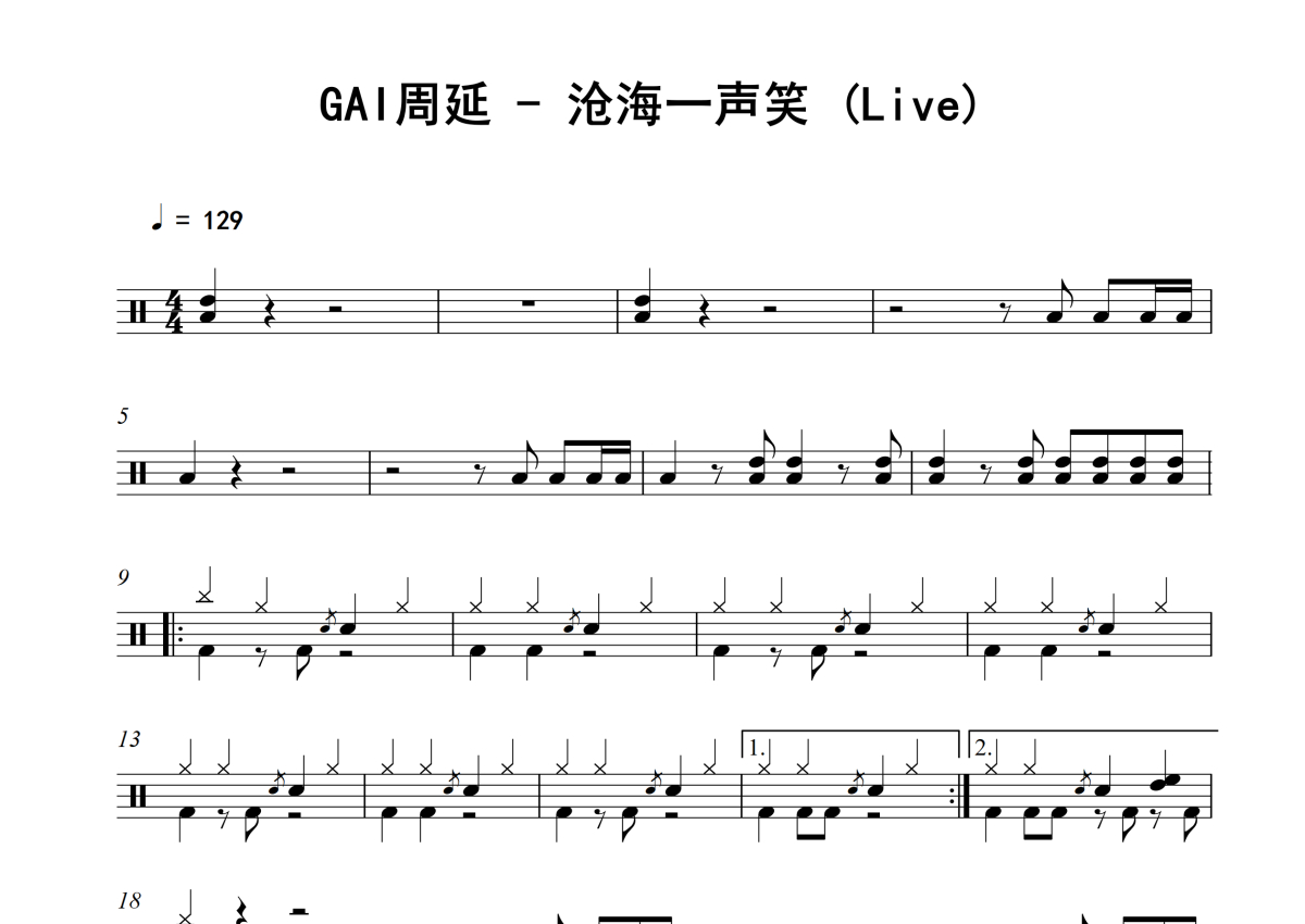 GAI周延《沧海一声笑》架子鼓谱 - Live