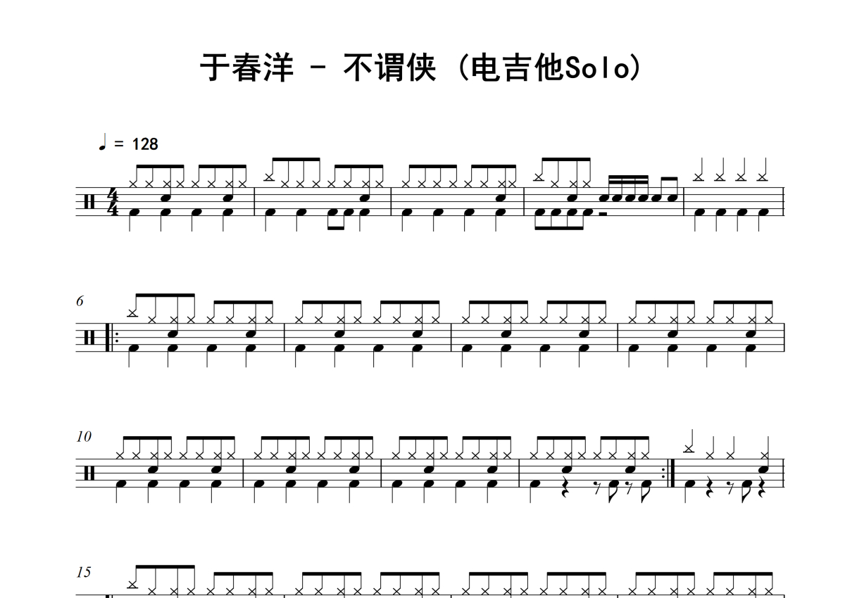 于春洋《不谓侠 (电吉他Solo)》架子鼓谱