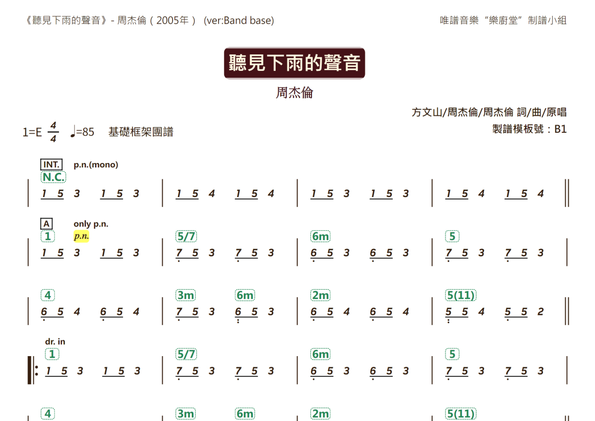 周杰伦《听见下雨的声音》乐队总谱 - 功能框架谱