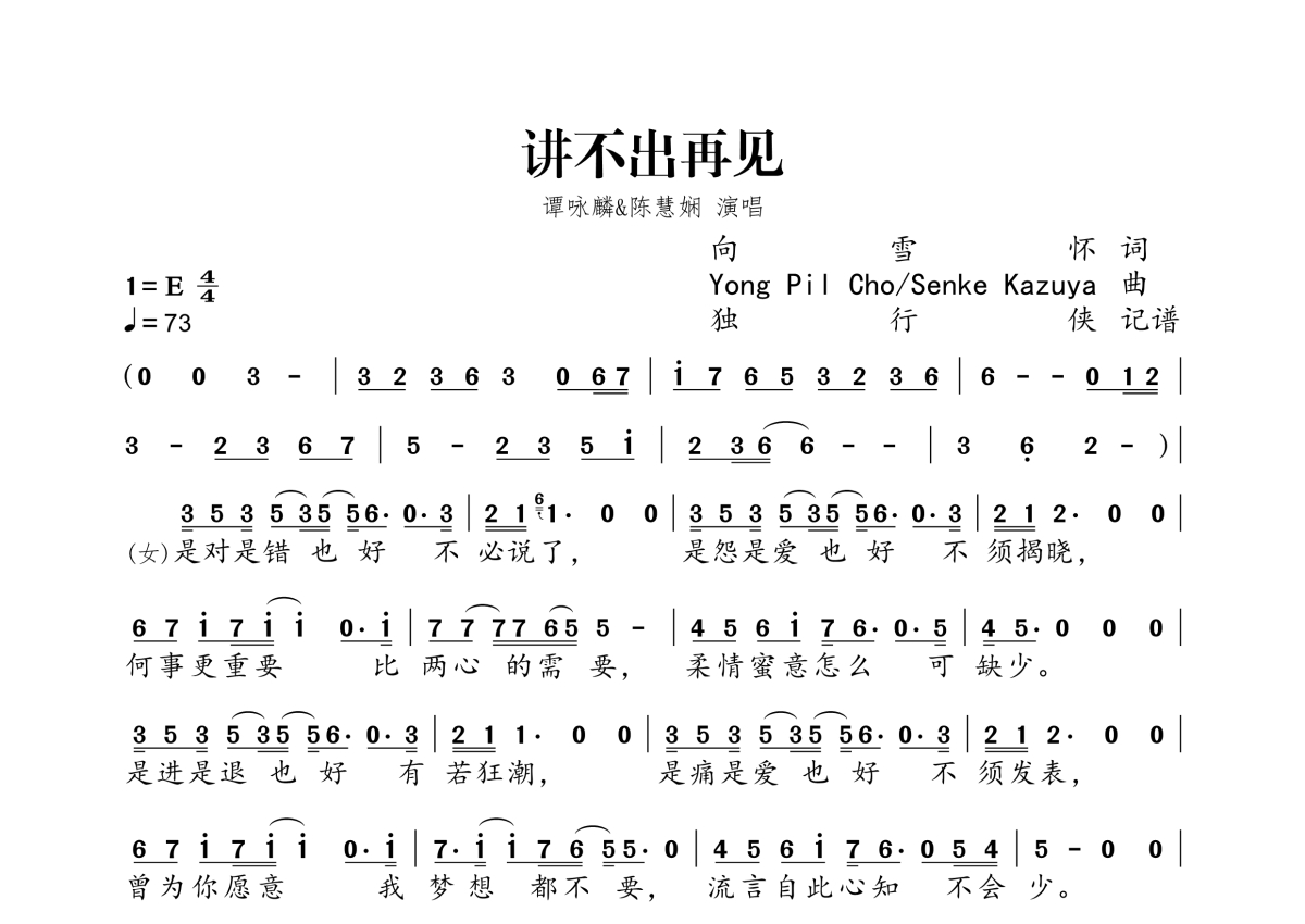 讲不出再见简谱 - 谭咏麟&陈慧娴演唱