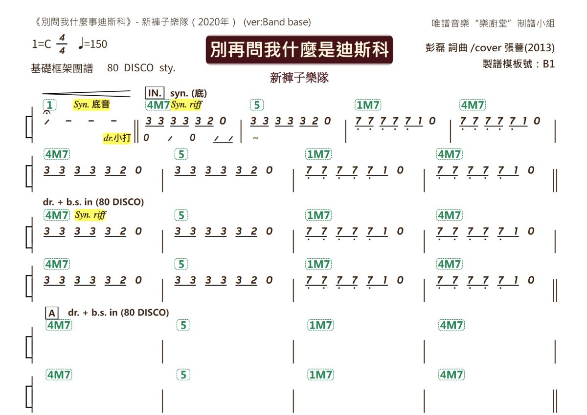 新裤子乐队《别再问我什么是迪斯科》乐队总谱 - 基础框架团谱
