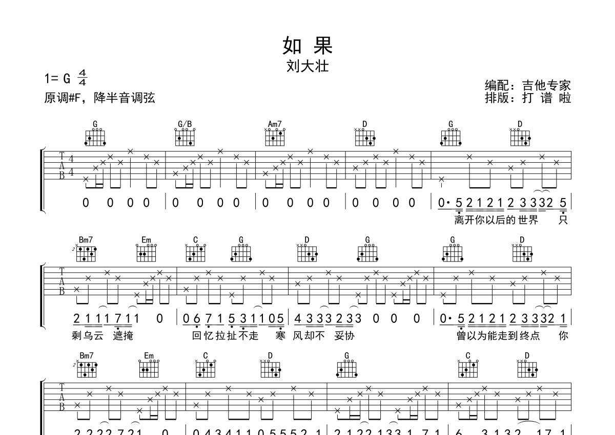 刘大壮《如果》吉他谱 - G调弹唱六线谱