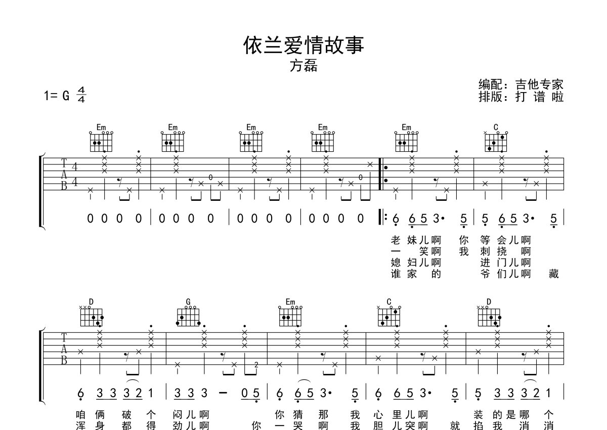 方磊《依兰爱情故事》吉他谱 - G调弹唱六线谱