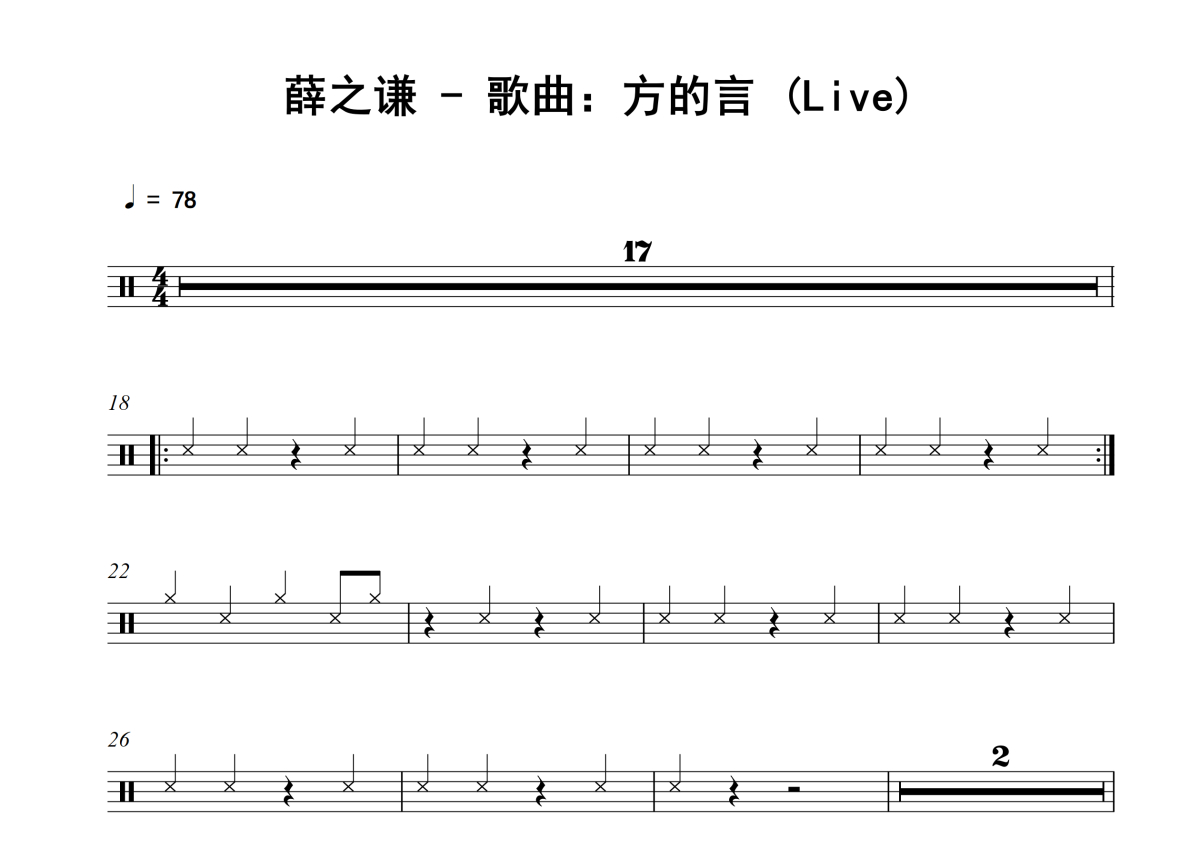 薛之谦《方的言》架子鼓谱 - Live