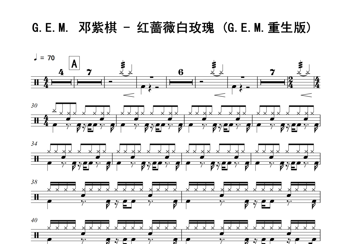 G.E.M. 邓紫棋《红蔷薇白玫瑰 (G.E.M.重生版)》架子鼓谱