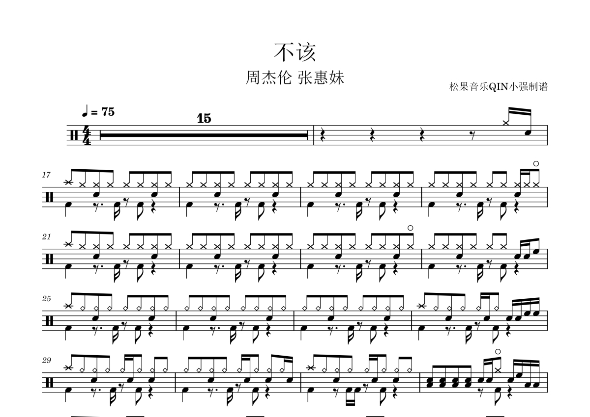 不该架子鼓谱 - 周杰伦 张惠妹演唱