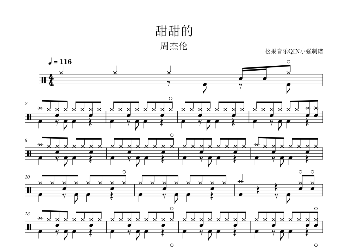 甜甜的架子鼓谱 - 周杰伦演唱