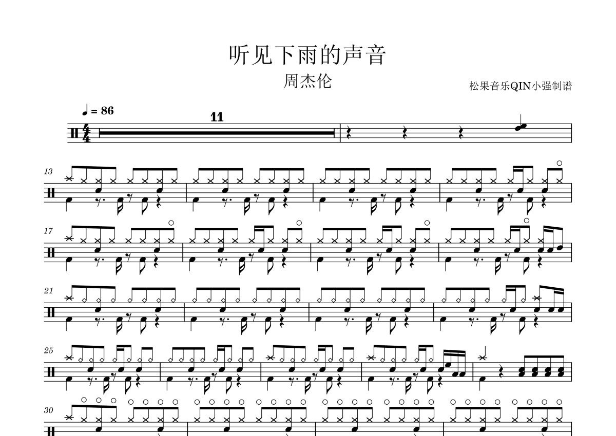 周杰伦《听见下雨的声音》架子鼓谱