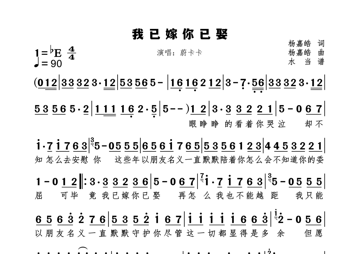 我已嫁你已娶简谱 - 蔚卡卡演唱