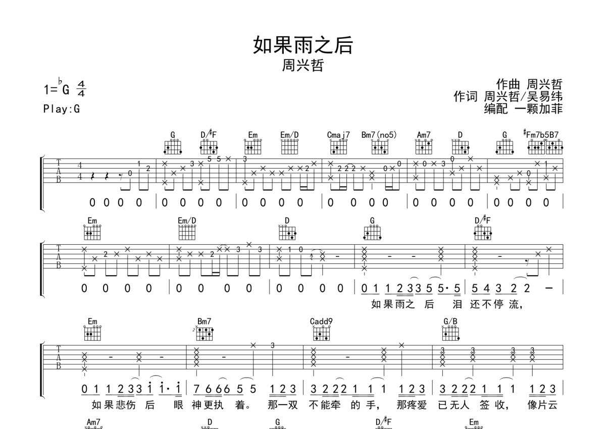 周兴哲《如果雨之后》吉他谱 - G调弹唱六线谱