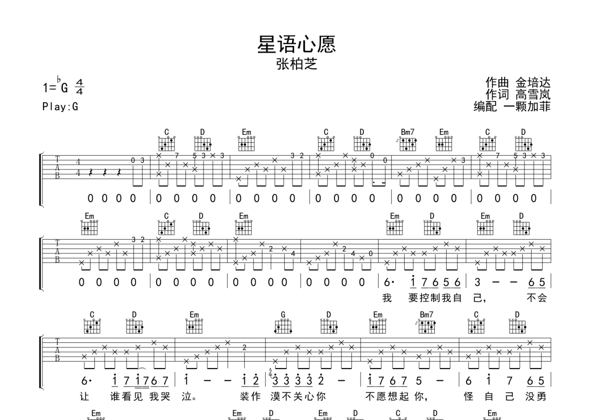 张柏芝《星语心愿》吉他谱 - G调弹唱六线谱