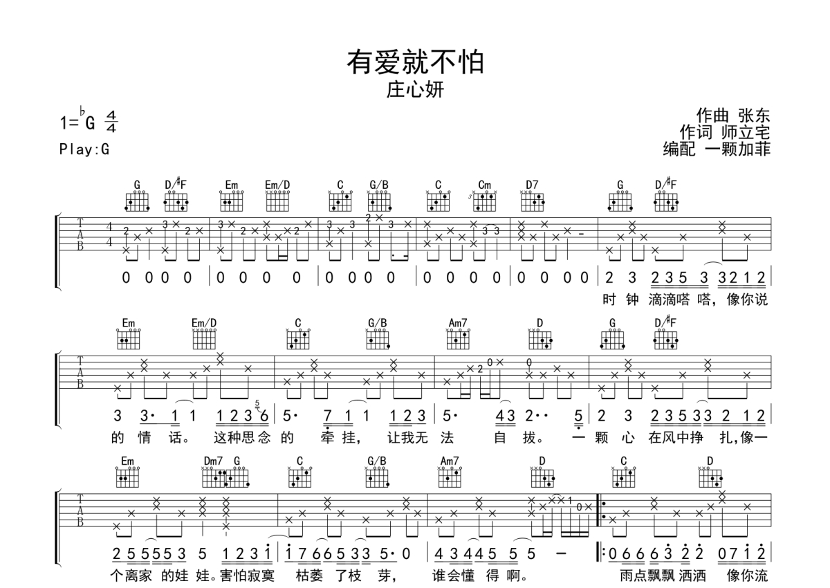 庄心妍《有爱就不怕》吉他谱 - G调弹唱六线谱