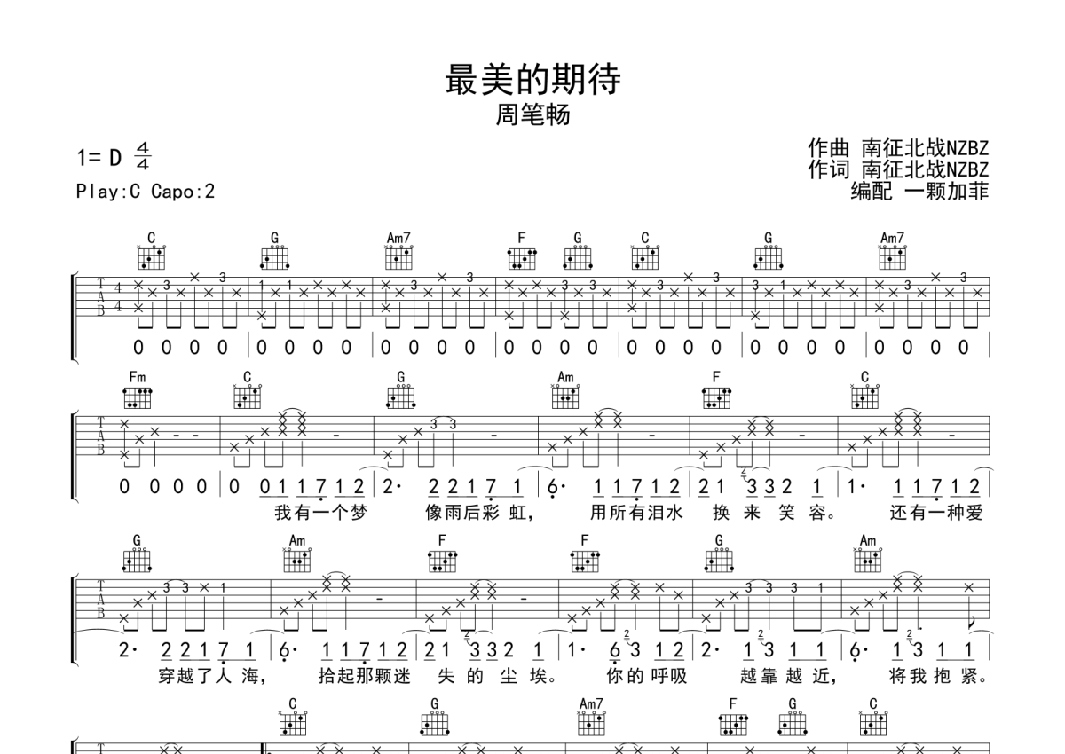最美的期待吉他谱 - 周笔畅演唱 - C调弹唱六线谱