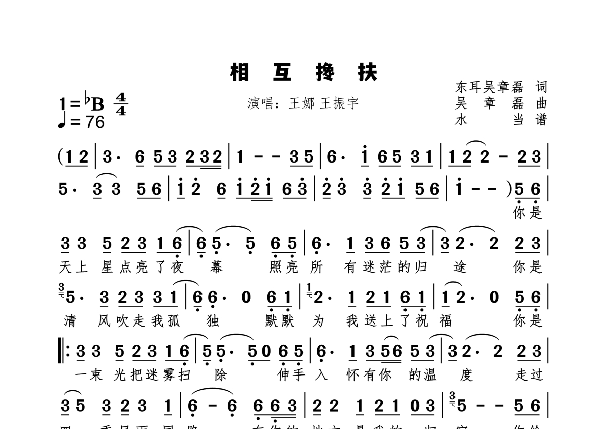 相互搀扶简谱 - 王娜 王振宇演唱