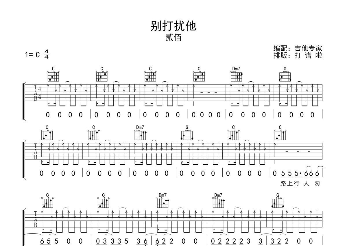 贰佰《别打扰他》吉他谱 - C调弹唱六线谱
