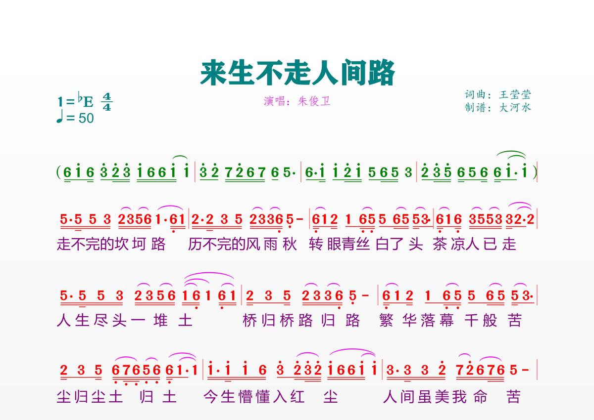 来生不走人间路简谱 - 朱俊卫演唱