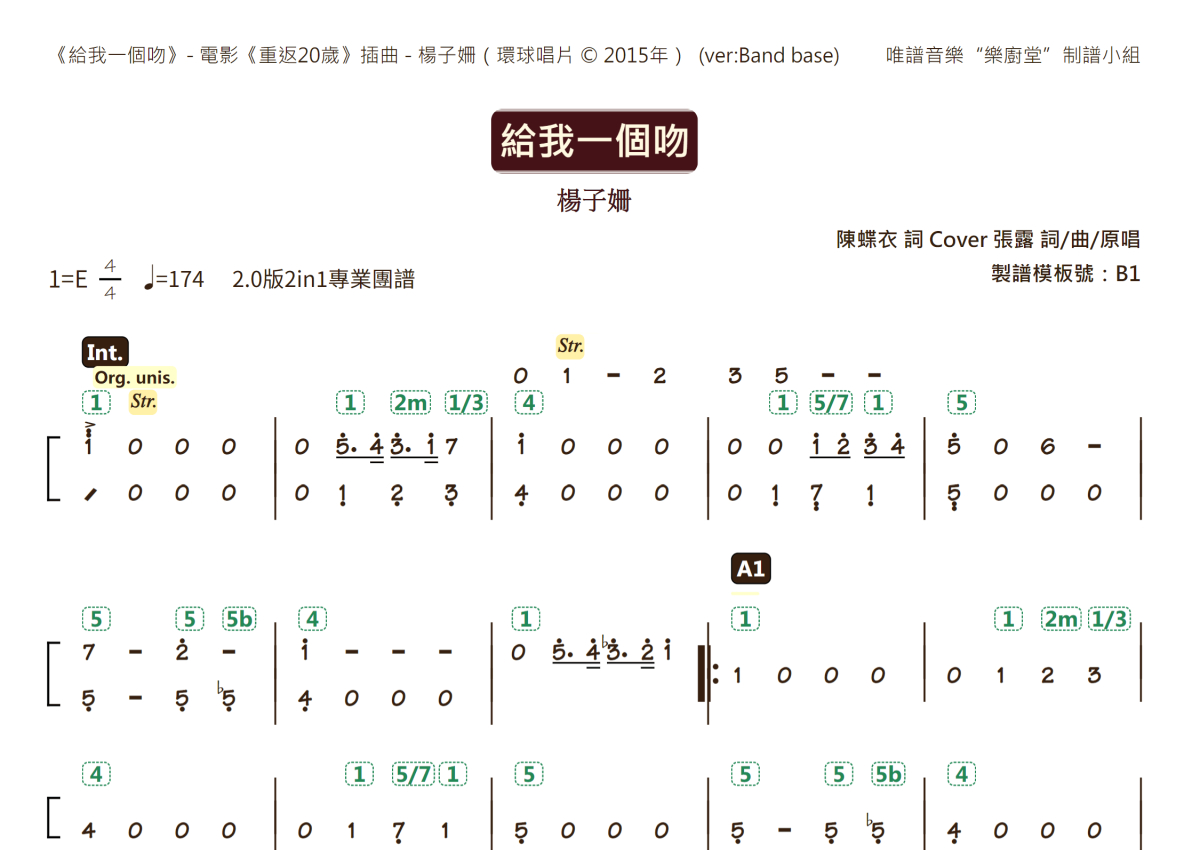 杨子姗《给我一个吻》乐队总谱 - 基础框架版团谱