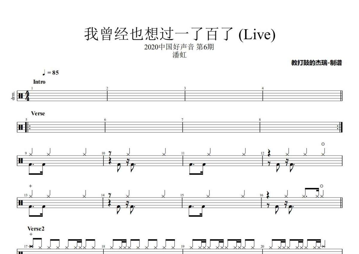 潘虹《我曾经也想过一了百了 (Live)》架子鼓谱 - 2020中国好声音 第6期