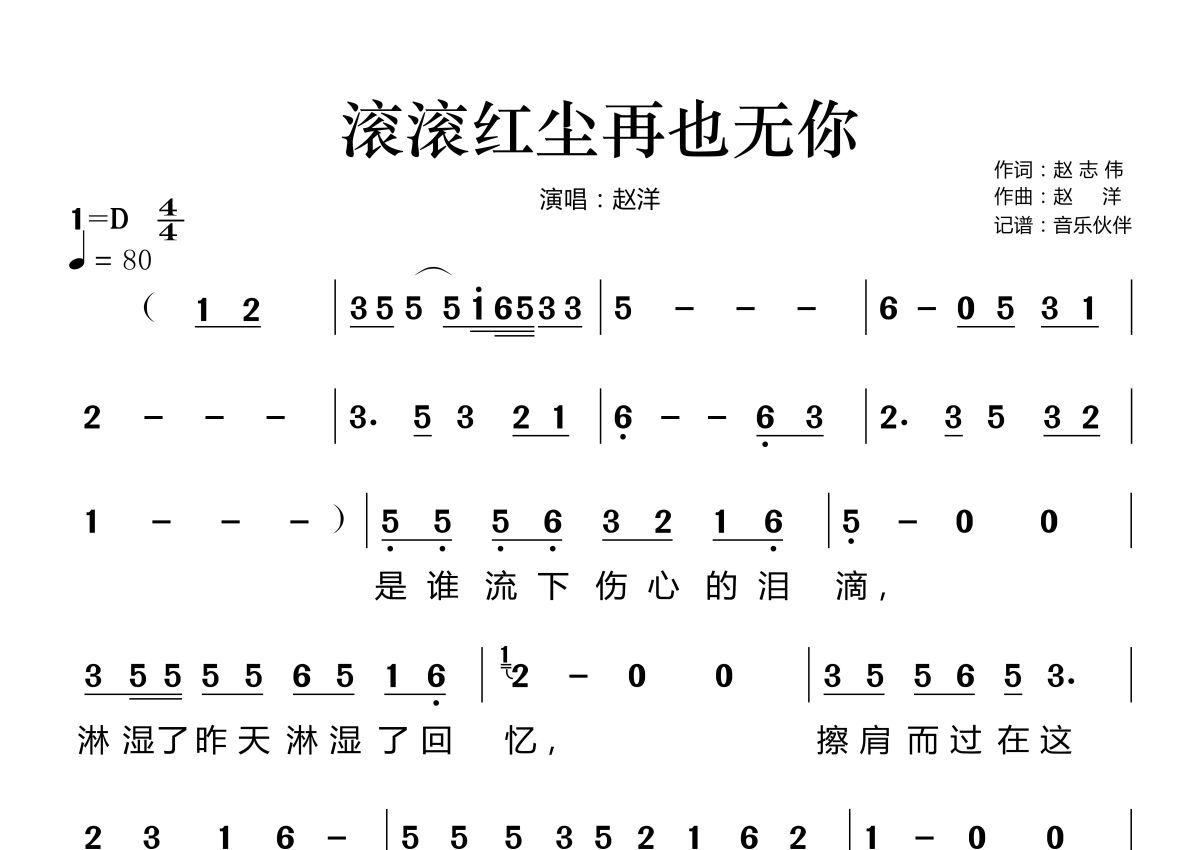 滚滚红尘再也无你简谱 - 赵洋演唱