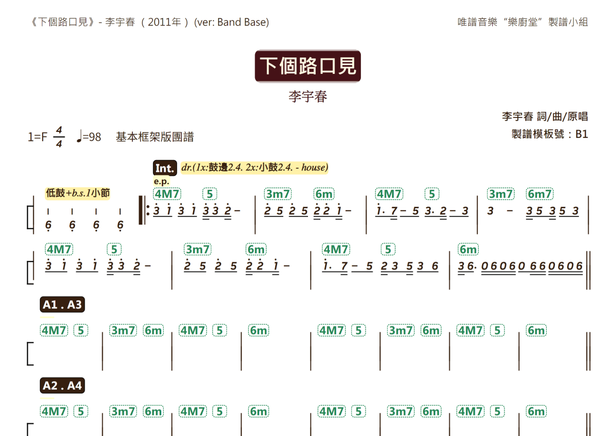 李宇春《下个路口见》乐队总谱 - 基础框架版团谱