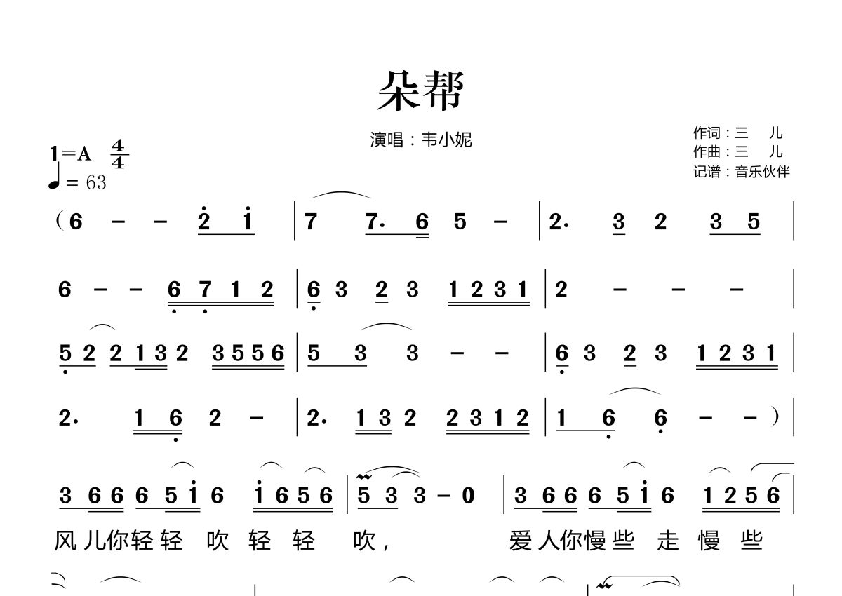 朵帮简谱 - 韦小妮演唱