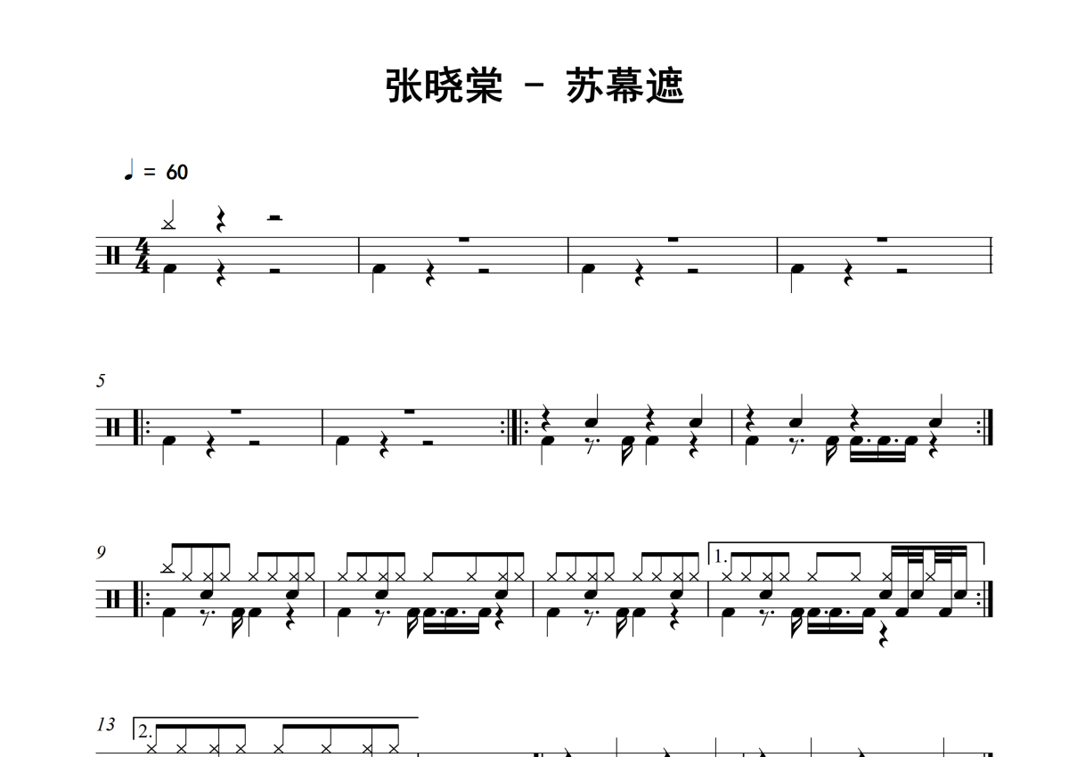 《苏幕遮》是张晓棠演唱的一首歌曲,拍号为4/4拍,歌曲速度为每分钟60拍,这份架子鼓谱共有两张高清图谱,图谱由 @失眠的土豆 编配上传,图谱使用五线谱编配,使用这份苏幕遮架子鼓谱,你将能够轻松地敲打出这首张晓棠的苏幕遮,快来尝试吧。