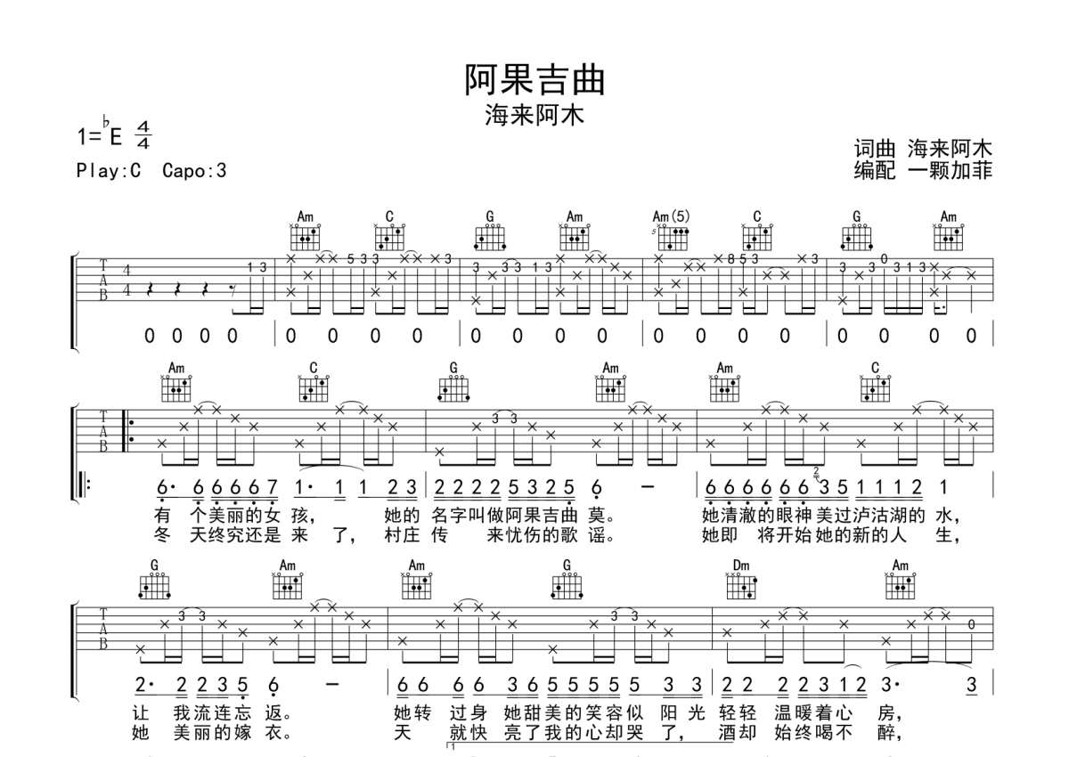 阿果吉曲吉他谱 - 海来阿木演唱 - C调弹唱六线谱