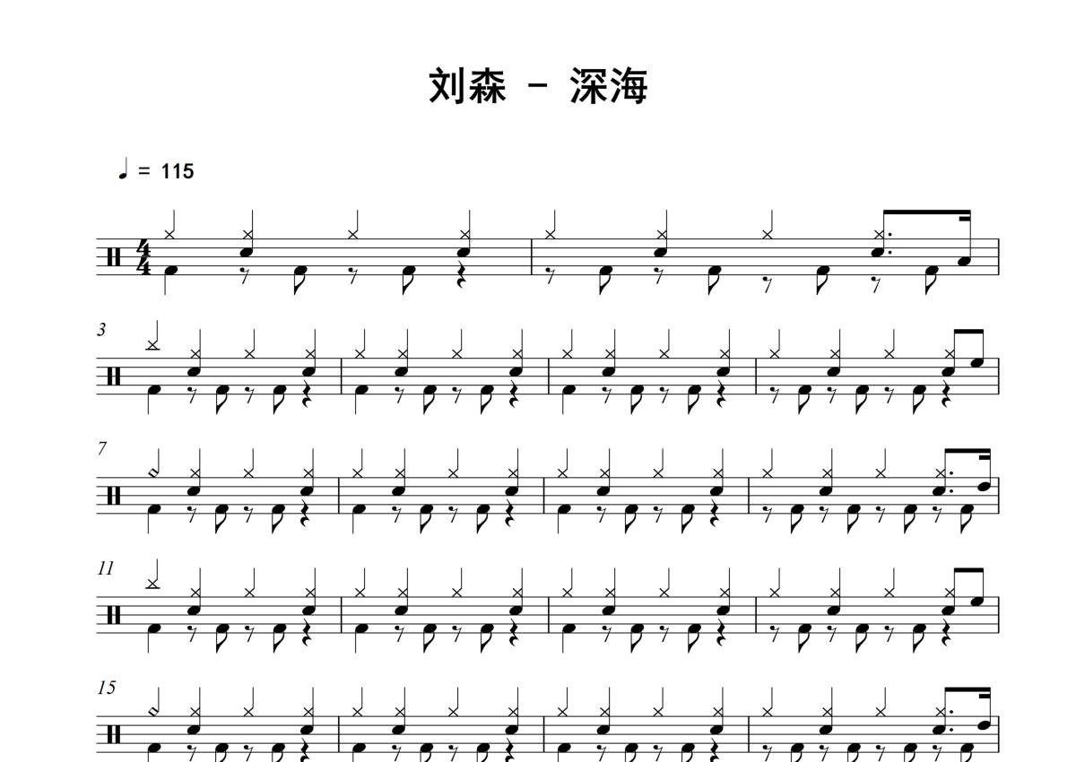 《深海》是刘森演唱的一首歌曲,拍号为4/4拍,歌曲速度为每分钟115拍,这份架子鼓谱共有三张高清图谱,图谱由 @庄颜 编配上传,图谱使用五线谱编配,使用这份深海架子鼓谱,你将能够轻松地敲打出这首刘森的深海,快来尝试吧。