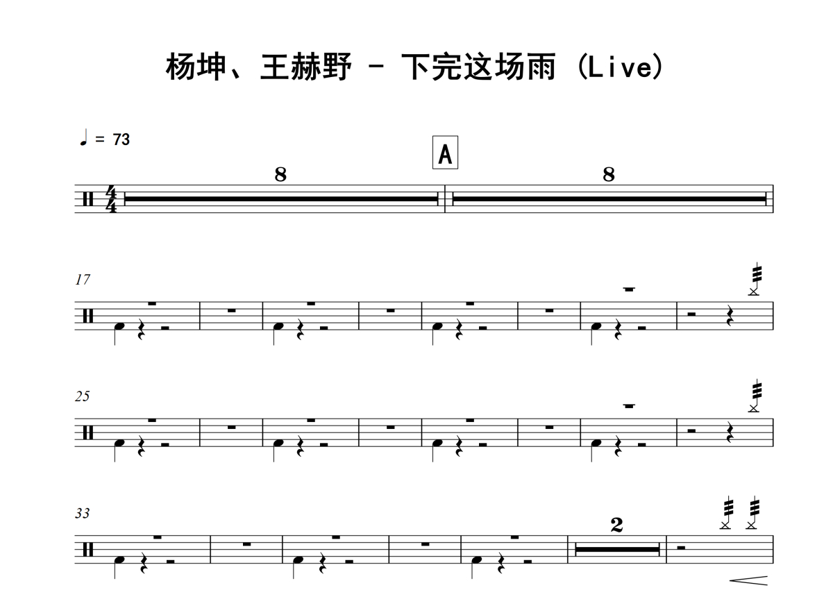 杨坤、王赫野《下完这场雨》架子鼓谱 - Live