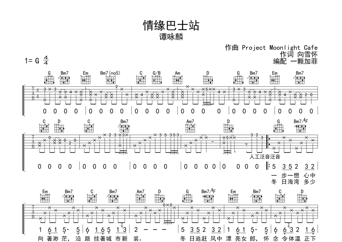 谭咏麟《情缘巴士站》吉他谱 - G调弹唱六线谱