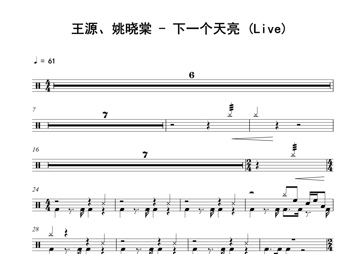 王源、姚晓棠《下一个天亮》架子鼓谱 - Live