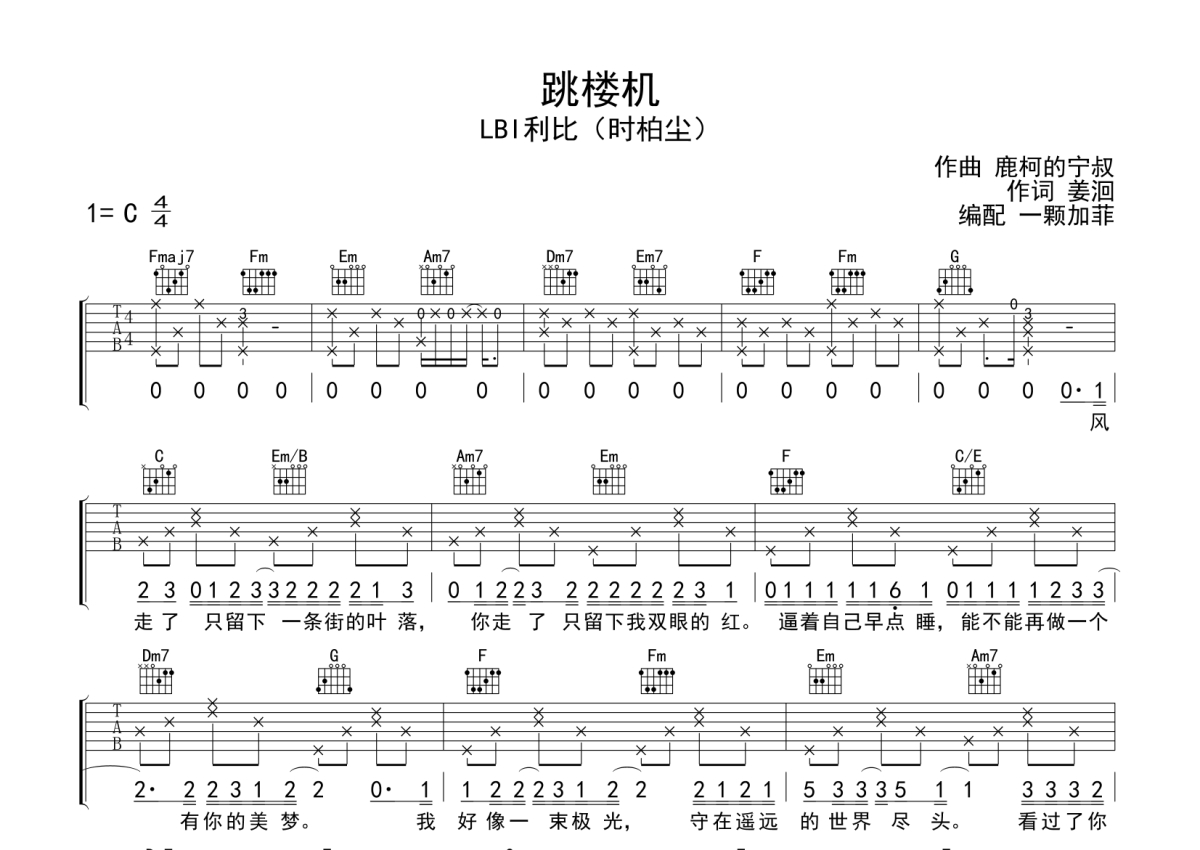 跳楼机吉他谱 - LBI利比演唱 - C调弹唱六线谱