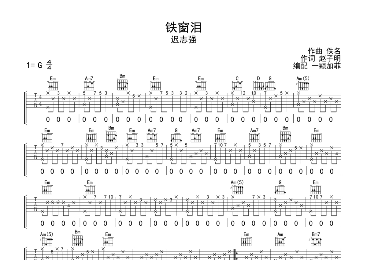 铁窗泪吉他谱 - 迟志强演唱 - G调弹唱六线谱
