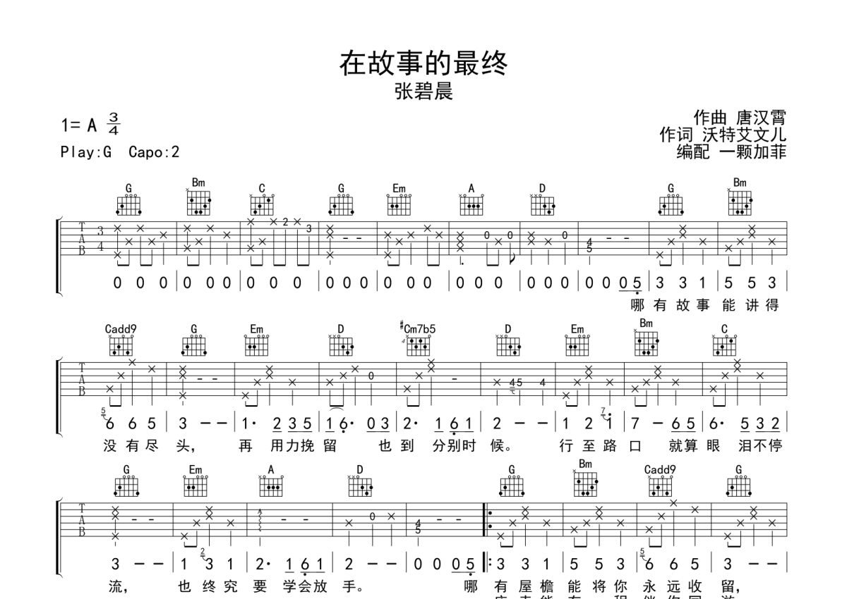 《在故事的最终》吉他谱 - 张碧晨 - G调弹唱六线谱
