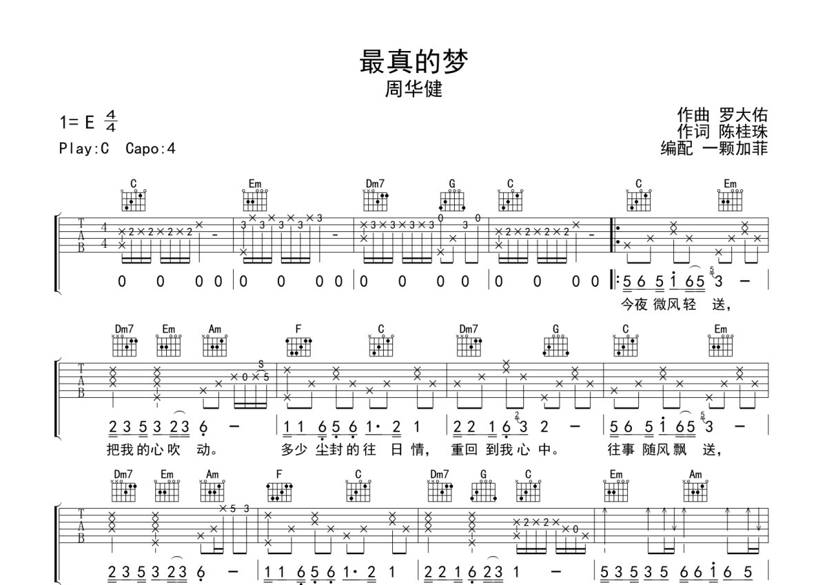 最真的梦吉他谱 - 周华健演唱 - C调弹唱六线谱