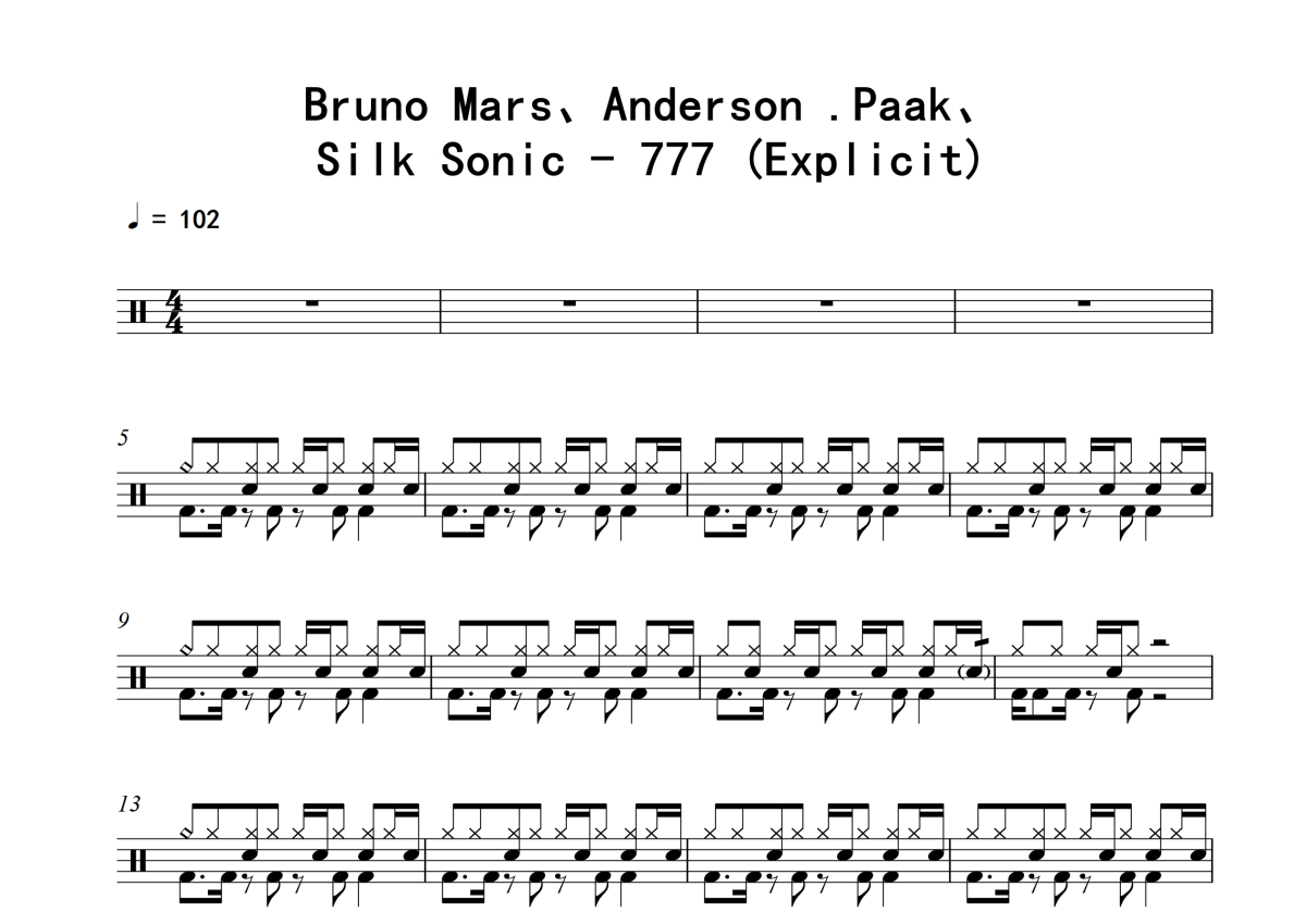 Bruno Mars、Anderson Paak、Silk Sonic《777 (Explicit)》架子鼓谱