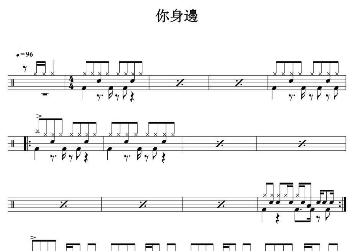《你身边》是黄立行演唱的一首歌曲,拍号为4/4拍,歌曲速度为每分钟96拍,这份架子鼓谱共有三张高清图谱,图谱由 @音符喷血者 编配上传,图谱使用五线谱编配,使用这份你身边架子鼓谱,你将能够轻松地敲打出这首黄立行的你身边,快来尝试吧。