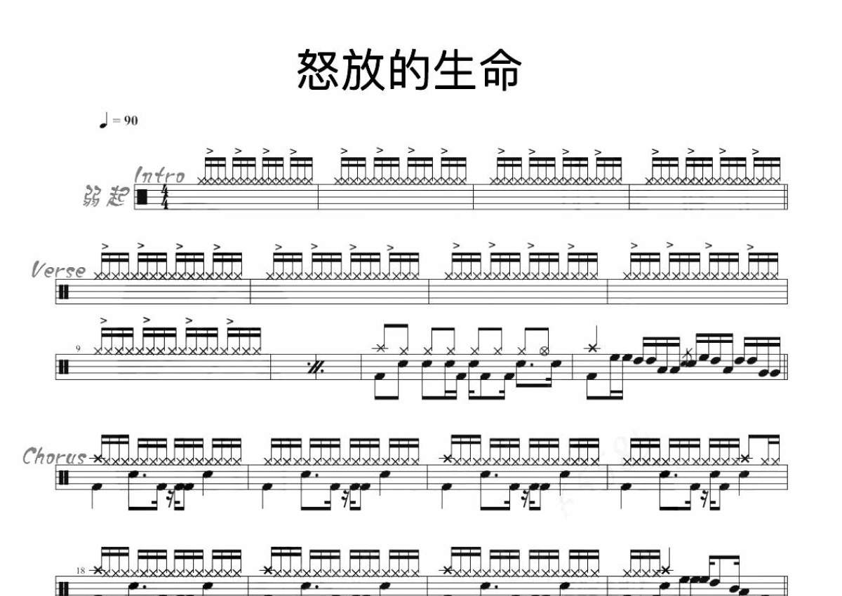 《怒放的生命》是汪峰演唱的一首歌曲,拍号为4/4拍,歌曲速度为每分钟90拍,这份架子鼓谱共有三张高清图谱,图谱由 @音符喷血者 编配上传,图谱使用五线谱编配,使用这份怒放的生命架子鼓谱,你将能够轻松地敲打出这首汪峰的怒放的生命,快来尝试吧。