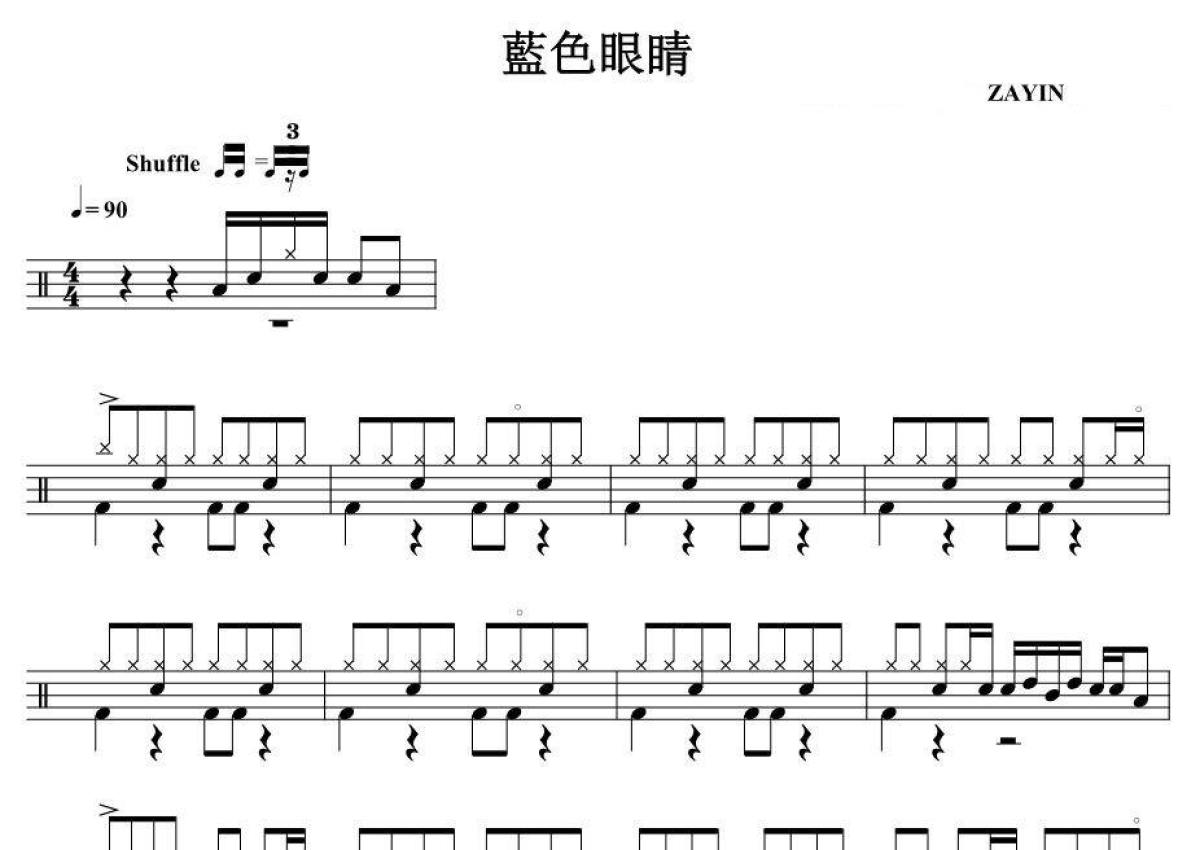 《蓝色眼睛》是展翼演唱的一首歌曲,拍号为4/4拍,歌曲速度为每分钟90拍,这份架子鼓谱共有四张高清图谱,图谱由 @音符喷血者 编配上传,图谱使用五线谱编配,使用这份蓝色眼睛架子鼓谱,你将能够轻松地敲打出这首展翼的蓝色眼睛,快来尝试吧。