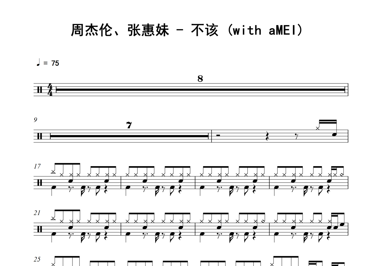 周杰伦、张惠妹《不该 (with aMEI)》架子鼓谱