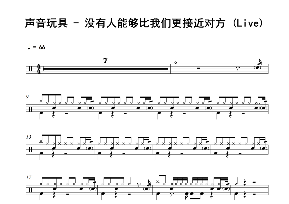 声音玩具《没有人能够比我们更接近对方》架子鼓谱 - Live