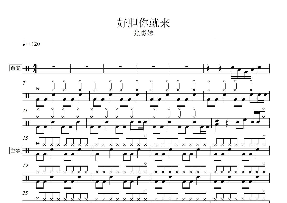 张惠妹《好胆你就来》架子鼓谱