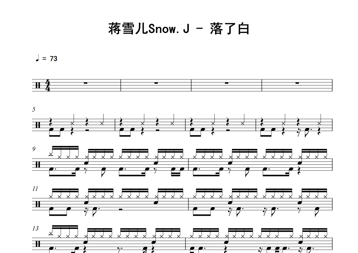 蒋雪儿Snow.J《落了白》架子鼓谱