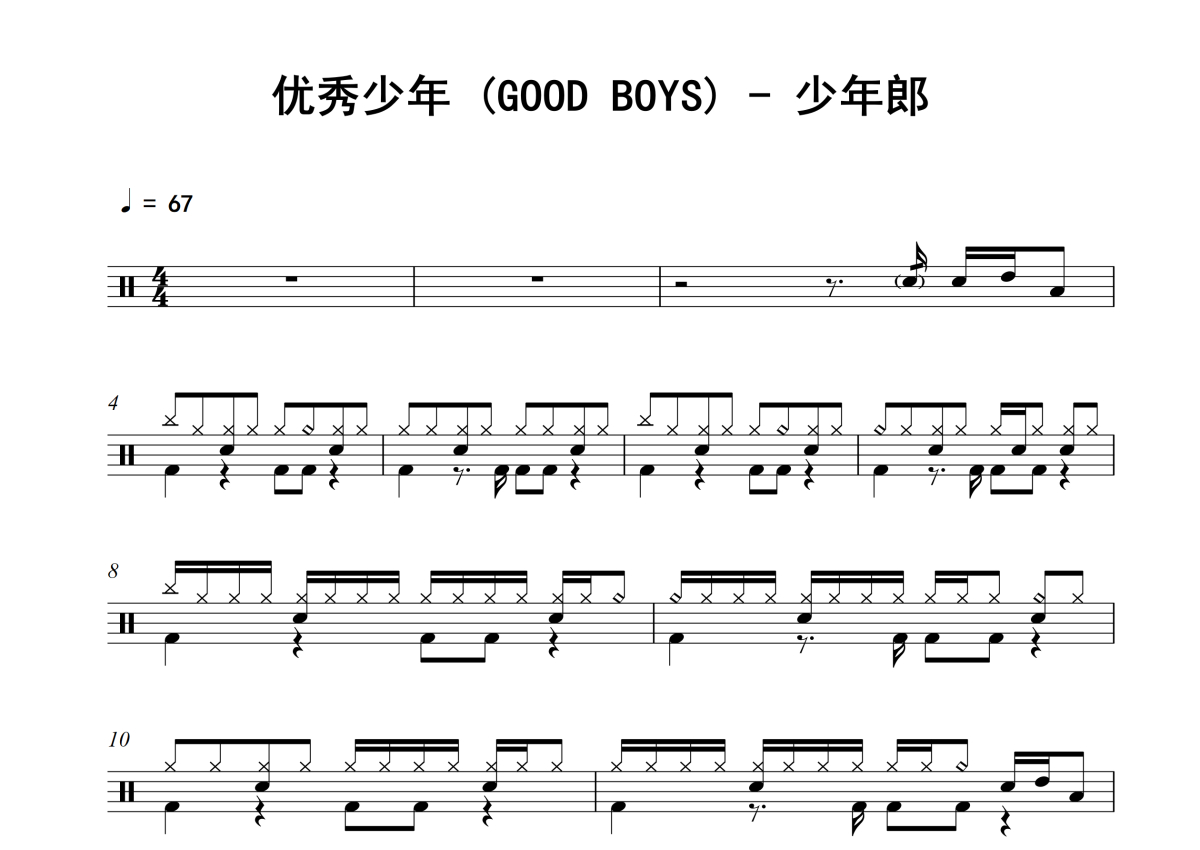优秀少年 (GOOD BOYS)《少年郎》架子鼓谱