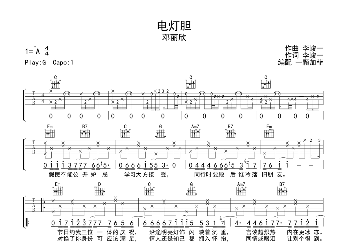 电灯胆吉他谱 - 邓丽欣演唱 - G调弹唱六线谱