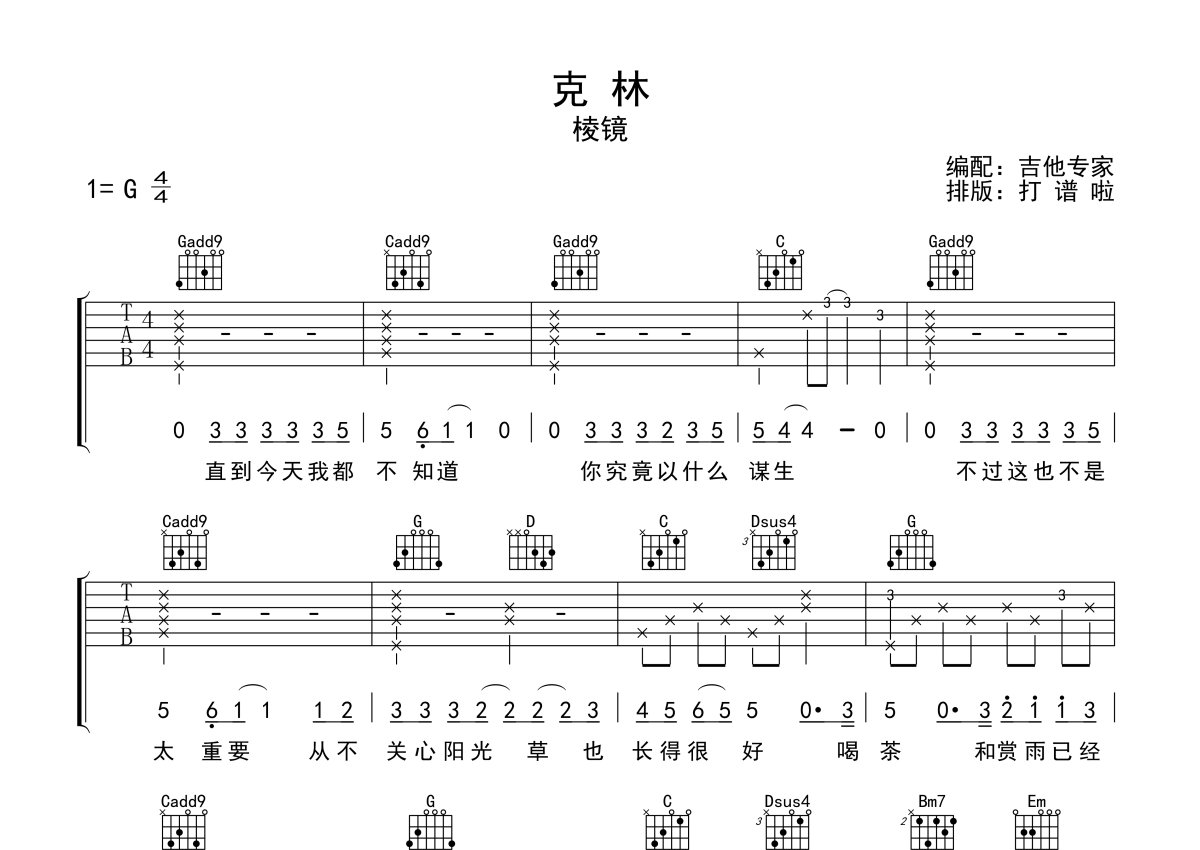 棱镜《克林》吉他谱 - G调弹唱六线谱